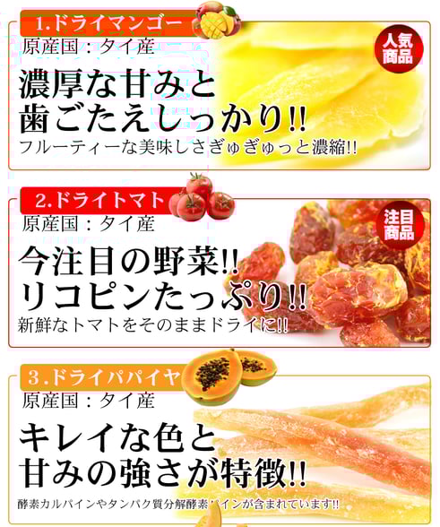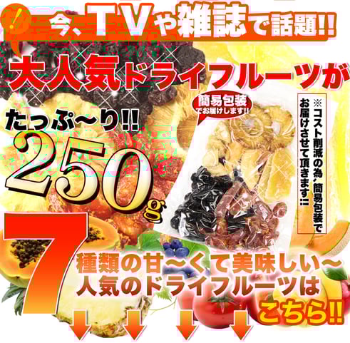 今回、ご紹介する商品は、甘くて美味しいドライフルーツが少しずつ試せる!!「人気の7種類が入った!