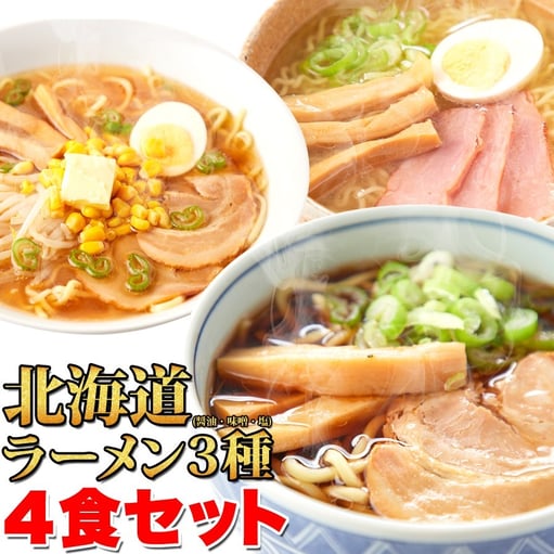 醤油・味噌・塩の3種の味が楽しめる欲張りセット!!北海道ラーメン4食(スープ付き)