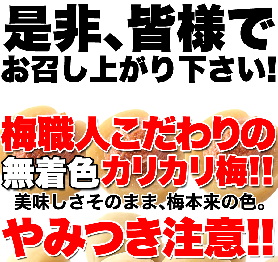 子供の頃に誰もが食べた「カリカリ梅」の美味しさはそのままに、無着色・国産にこだわって作りました。